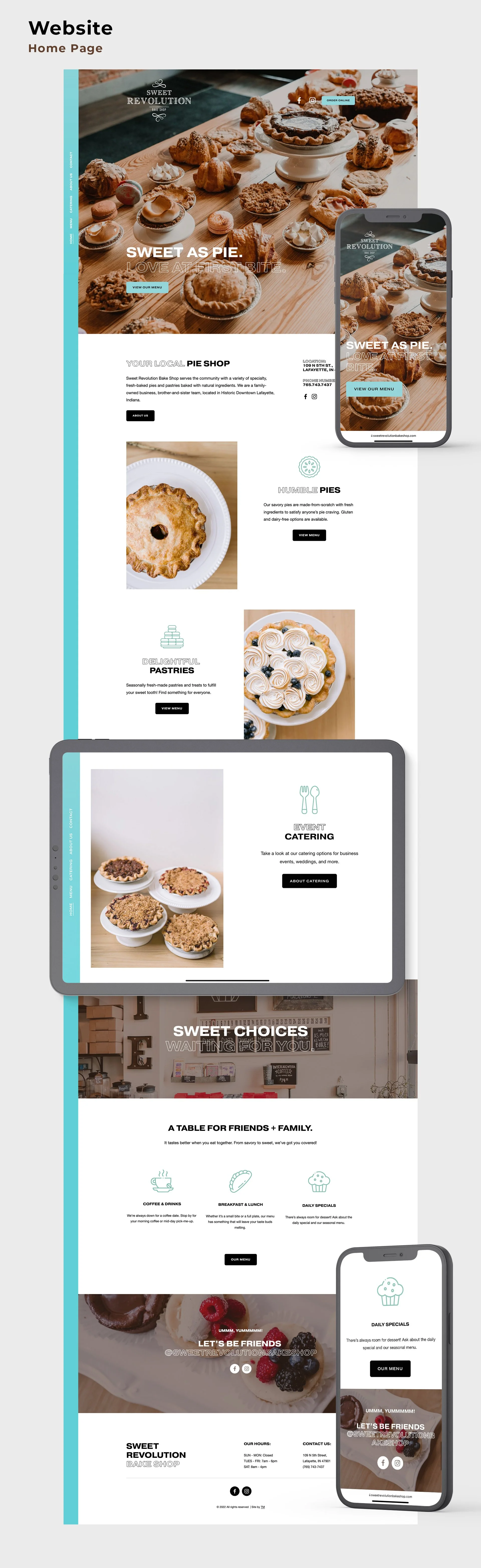 Sweet Revolution Bake Shop, a local and family-owned pie shop, specializes in crafting a variety of specialty, fresh-baked pies and pastries made with natural ingredients. Adaptable Marketing was commissioned to redesign and upgrade their website to boost awareness of the shop’s renowned chef and their delicious pie offerings.